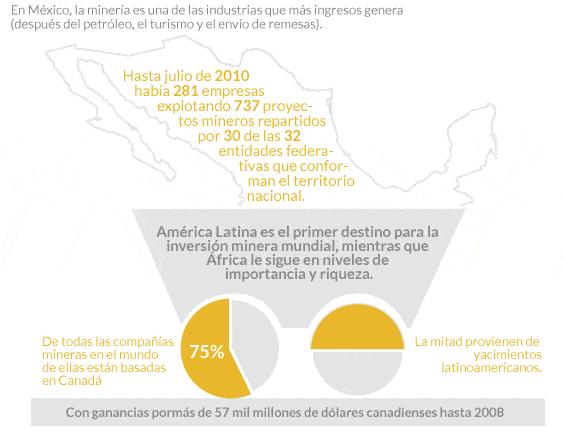 De acuerdo con la revista Business Americas News, sólo en México existen 578 proyectos mineros activos, todos con permisos legales para operar y explotar los yacimientos mineros existentes. Sin embargo, tal como han hecho notar diversas organizaciones civiles canadienses, estas “inversiones” no están beneficiando a los pobladores de estos preciosos lugares, y antes bien, están afectando al medio ambiente, a la salud humana y a las relaciones sociales de los lugareños.