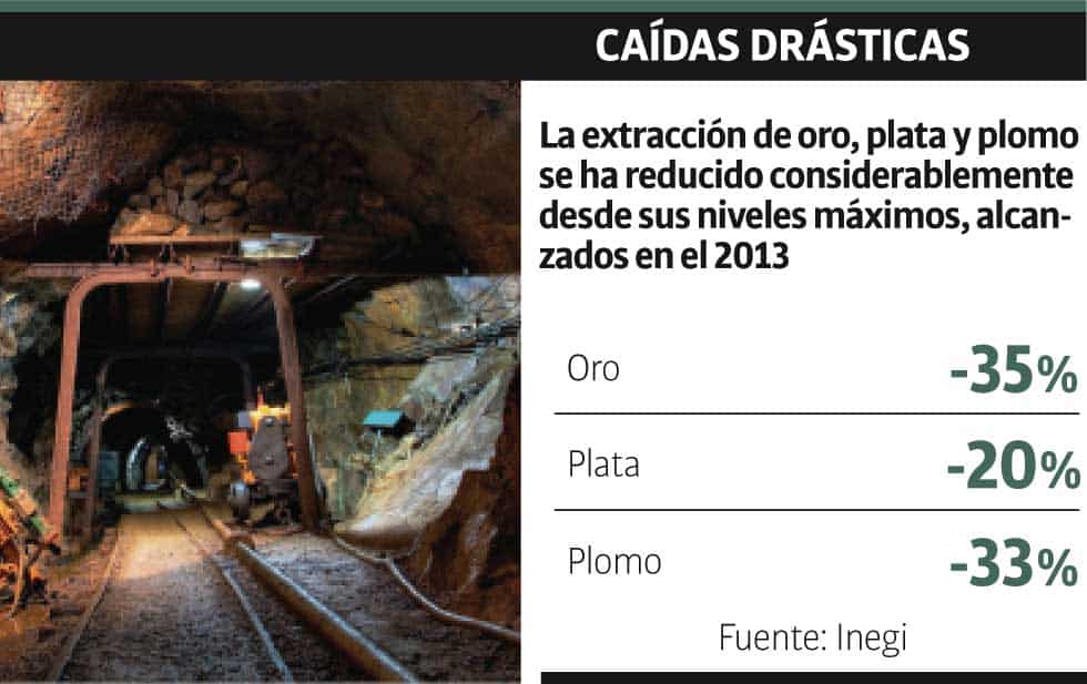 México.-La producción de oro en el estado se desplomó un 35 por ciento, la de plata un 20 por ciento y la de plomo un 33 por ciento desde sus máximos alcanzados a finales del 2013, según datos liberados ayer en un reporte del Instituto Nacional de Estadística y Geografía (Inegi).