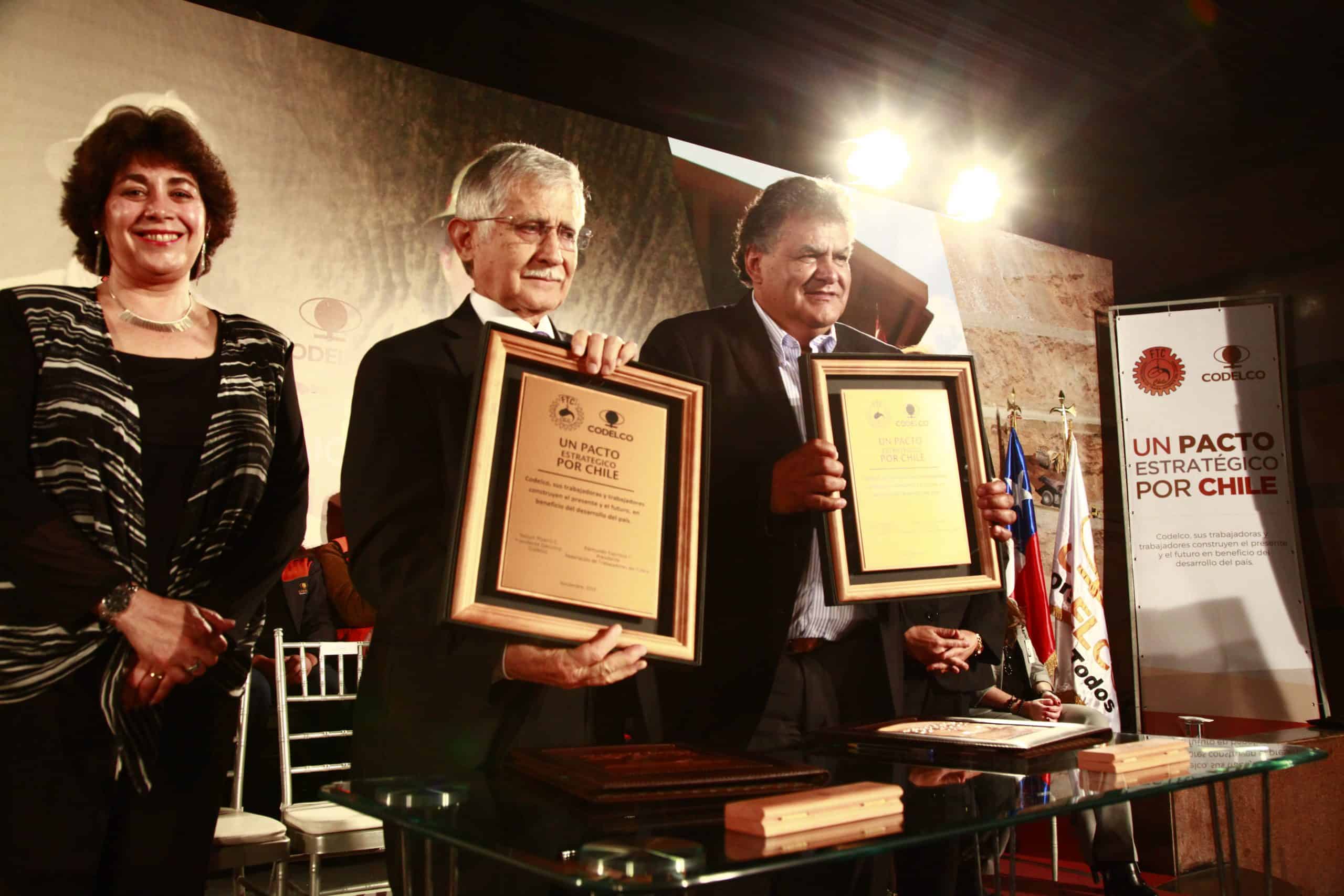 En tanto, Raimundo Espinoza, presidente de la Federación de Trabajadores del Cobre, FTC, llamó a los trabajadores a sumarse a este pacto y a mantenerse unidos para enfrentar el presente. “No podemos ser un movimiento sindical contestatario, tenemos que ser un movimiento sindical que independientemente de las críticas, (se preocupe de) cuidar nuestra empresa”. El dirigente sindical agregó que “lo que nos espera no es una tarea fácil. Es una tarea difícil, compleja, pero tenemos la gran oportunidad, no sólo en este país, sino para decirle al mundo que en Chile hay una empresa del Estado que es capaz de poder desarrollarse en mercado tan competitivo como este. Y eso es porque están de acuerdo los trabajadores, los ejecutivos y porque está de acuerdo el Gobierno.”, manifestó.