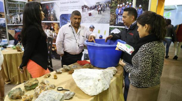Los representantes de las mayores empresas mineras que operan en Ecuador como Lundin Gold y Ecuacorriente participan en la exhibición.