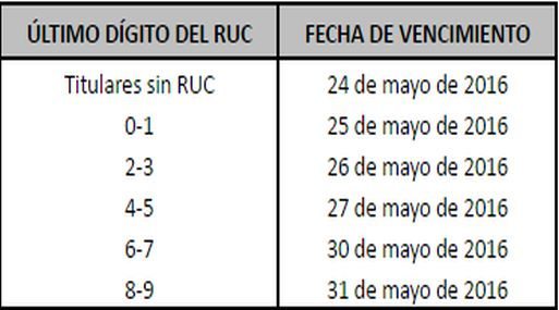 La fecha de vencimiento para la presentación de la DAC se realizará de acuerdo al siguiente cronograma, considerando el último dígito del número de RUC de los titulares mineros.