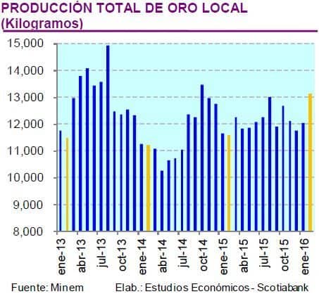 El incremento estimado de 10% en la cifra oficial de producción de oro para el 2016 está distorsionado por el cambio metodológico implementado por el MEM, según el Scotiabank.