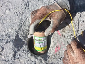 “Esto es muy importante, porque la velocidad de deflagración no supera los mil metros por segundo, lo que lo hace tácitamente un dispositivo pirotécnico, en lugar de denominarlo como un explosivo (…) Este dispositivo genera muy poco vuelo de partícula, una onda de choque muy baja, un nivel de ruido mínimo, casi nula vibración y un alto control sobre la fragmentación de roca”.