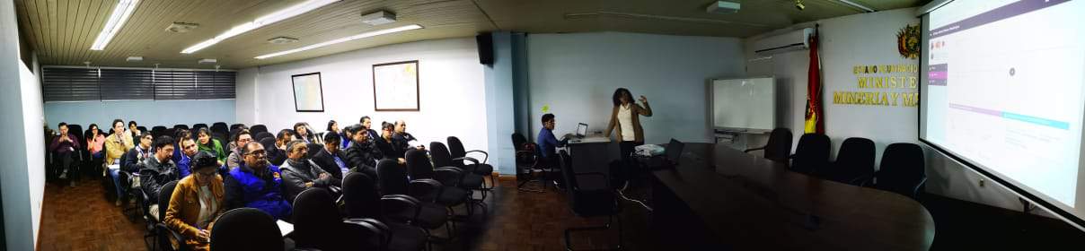 Servidores del Servicio Nacional de Registro y Control de la Comercialización de Minerales y Metales (SENARECOM), Servicio Nacional de Geología y Minería (SERGEOMIN), la Autoridad Jurisdiccional Administrativa Minera (AJAM) y el Fondo de Financiamiento a la Minería (FOFIM), así como personal del Ministerio de Minería escucharon atentos la explicación que fue dada en el Auditorio de la institución, y también absolvieron las dudas que este moderno sistema ofrecerá.