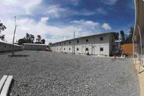 Planta de procesamiento minera en terreno árido de Durango con maquinaria y sistemas de transporte de mineral.