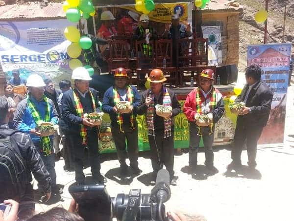 El viceministro de Desarrollo Productivo Minero Metalúrgico, Víctor Flores en representación del Ministro de Minería y Metalurgia, César Navarro, inauguró el martes el Proyecto de Prospección y Exploración que realizará el Servicio Geológico Minero (SERGEOMIN) en los municipios de Uncía y Llallagua del departamento de Potosí.