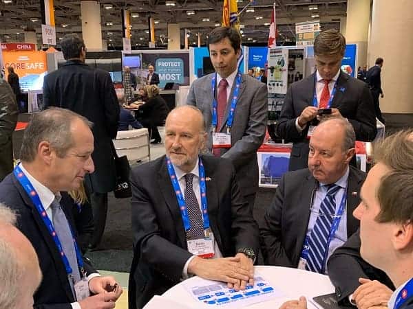 La electromovilidad fue el tema central de la reunión que sostuvieron el ministro de Minería, Baldo Prokurica, y el subsecretario de Estado Parlamentario del Ministerio Federal de Asuntos Económicos y Energía de Alemania, Oliver Wittke, en el pabellón chileno de la feria PDAC 2019 que se realiza en Toronto, Canadá.
