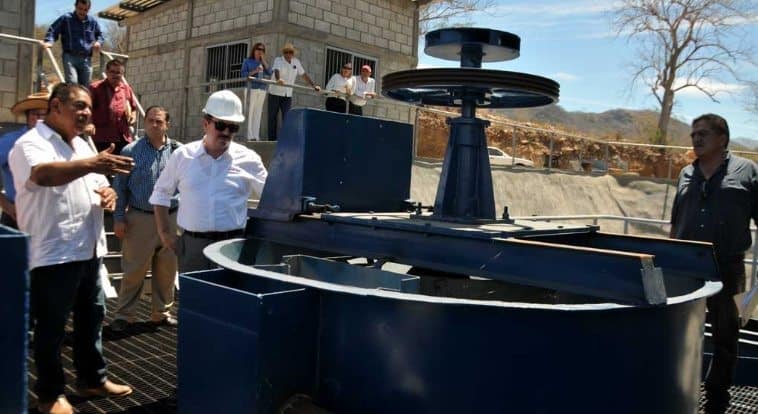 Planta de procesamiento minera en terreno árido de Durango con maquinaria y sistemas de transporte de mineral.