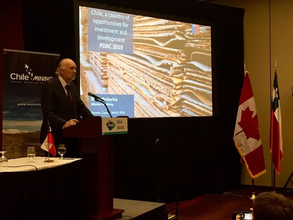 Un llamado a las compañías internacionales a considerar a nuestro país como destino de sus inversiones realizó el ministro de Minería, Baldo Prokurica, al encabezar la realización del “Chile Day”, seminario en el que se difundió la marca país y que marcó la última jornada de la feria PDAC (Prospectors & Developers Association of Canada) 2019 que se desarrolló entre el 3 y el 6 de marzo en Toronto.