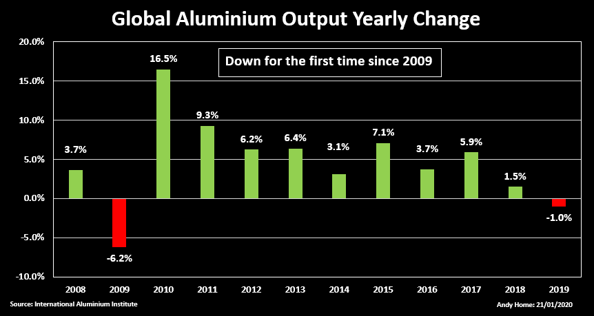El problema es que un año raro de menor producción coincidió con un año igualmente raro de débil demanda de aluminio.