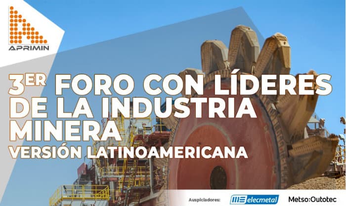 La Asociación de Proveedores Industriales de la Minería, APRIMIN, realizará su 3er Foro con Líderes de la Industria Minera – Versión Latinoamericana, el evento contará con la participación del Ministro de Minería, Baldo Prokurika, Karen Flores, Gerente General Cámara Minera de México; Fernando Benalcázar, Viceministro de Minas del Ecuador; Eduardo Chaparro, Ex-Director Asomineros ANDI – Colombia; Zorel Morales, director Ejecutivo CAMIPA – Panamá y Ricardo Labó, Ex-Viceministro de Minas del Perú. El 3er Foro con Líderes de la Industria Minera, versión Latinoamericana, se llevará a cabo el próximo viernes 17 de julio a las 10 horas y será transmitido por el canal APRIMIN TV en Youtube.