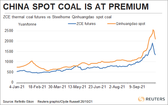 Un mejor indicador del precio del carbón en este momento es la gama de precios al contado elaborada por varios proveedores para distintos puntos de entrega física en China, el mayor productor, importador y consumidor de carbón del mundo.
