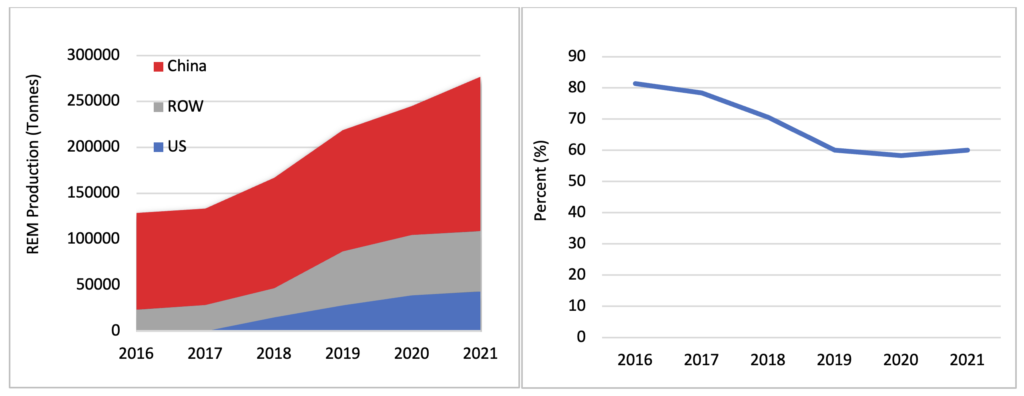 “Sirven como recordatorios aleccionadores de que depender de proveedores dominantes y actores revisionistas para productos básicos vitales puede crear peligros significativos”, señalan los investigadores. “En particular, las crecientes tensiones comerciales y de seguridad geopolítica con China podrían amenazar el suministro de REE, influyendo potencialmente en hasta 1 billón de dólares de mercancías”.