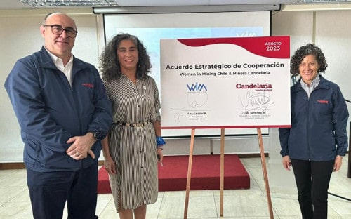 La firma simbólica del convenio tuvo lugar durante el Segundo Encuentro del Núcleo Región de Atacama de WIM. El evento contó con la presencia de Maritza Henríquez en representación de WIM; Luis Sánchez, presidente y director Ejecutivo de Minera Candelaria; Karina Briño, gerenta general de Administración de la compañía; y el seremi de Minería de Atacama, Carlos Ulloa, entre otras autoridades e invitados especiales.