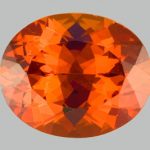 La espesartina, anteriormente llamada espesartita, es una de las formas más raras de granate . Debido a su color naranja brillante, también se conoce como granate mandarín. El nombre espesartina proviene del distrito Spessart de Baviera. La espesartina se puede confundir con granate hessonita o topacio amarillo. Sin embargo, tras una inspección detallada, sus encajes o inclusiones en forma de pluma hacen que la espesartina sea distinguible. Dependiendo de su composición química, la piedra puede variar en color de naranja a rojo oscuro, marrón rojizo, rosa anaranjado, rojo anaranjado, amarillo parduzco y algunas veces casi negro. Sin embargo, las muestras de color naranja brillante son las más apreciadas. Estas piedras de color naranja son puras, mientras que otras piedras de color tienen contenido de hierro, lo que cambia el naranja a un color más oscuro. Las piedras preciosas facetadas resaltan el mejor color.