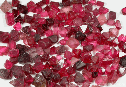 La espinela ocurre naturalmente en cristales octaédricos. En cristales rojos bien formados, los cortadores de gemas pueden igualar un cristal en un octaedro perfecto. Estos “cristales” se usan ocasionalmente en joyas sin más facetas.