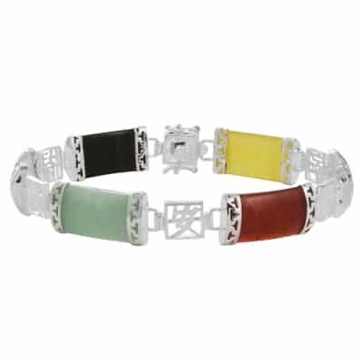 Las piedras preciosas de jade a menudo son multicolores o moteadas. Una combinación de color blanco y verde claro es una forma muy común, y las piedras más oscuras generalmente tienen manchas negras. Las piedras de color uniforme son menos comunes. Las piedras de colores más profundos son más valiosas, y la forma más valiosa se llama Imperial Jade , que es de color verde esmeralda y translúcida.