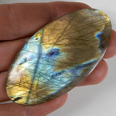 La labradorita tiene un brillo vítreo y tiene una calificación de 6 a 6.5 en la escala de dureza . Rara vez se confunde con otras gemas, ya que su brillo es tan único. Este brillo, o iridiscencia brillante, es causado por la dispersión o reflejo de la luz. Cuando la luz se dispersa o se refleja por pequeños entrecruzados y sufre interferencia, nace este brillo, que se conoce como schiller. Este magnífico efecto llamativo puede ser naranja, verde, amarillo, violeta, azul o todos estos colores a la vez. Cuando todos estos colores se muestran a la vez, el fenómeno se conoce como laboradorescence. Cuando se encuentran laboradritas, algunos pueden mostrar un indicio de este fenómeno visual, sin embargo, la mayoría debe pulirse, para sacar el efecto completo de esta pantalla. A veces, las piedras con laboradorescence se llaman arcoirispiedra de luna . También hay una nueva variación de la piedra que se ve en el mercado con más frecuencia en estos días. Es una brillante variedad de labradorita de rojo a naranja de Oregon llamada piedra solar.