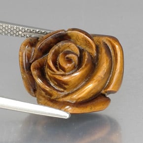El Ojo De Tigre, una piedra preciosa popular pero económica, es un pseudomorfo de cuarzo compacto después del mineral fibroso Crocidolita. Se forma cuando el Cuarzo se hace cargo y disuelve la Crocodolita, dejando el Cuarzo en una forma finamente fibrosa y chatoyante . Cuando se pule, su brillo sedoso crea un hermoso efecto chatoyante al mover capas de líneas y ondas marrones y amarillas.