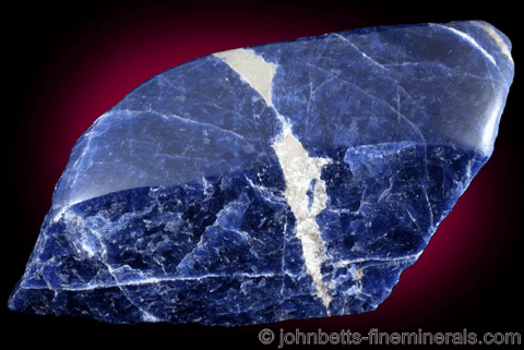 La sodalita es un miembro del grupo de minerales Feldspathoid , que se forman en ambientes ricos en álcali, pero pobres en sílice. El hermoso color azul puro de sodalita lo convierte en una piedra popular para joyas y adornos. La piedra generalmente se corta plana o como un cabujón . Los cristales transparentes se encuentran muy raramente. Se pueden encontrar algunos cristales de sodalita en el Monte Vesubio o Arisquarry, Namibia, sin embargo, rara vez son lo suficientemente grandes como para ser facetados. La sodalita califica un 5.5 en la escala de dureza . Es un azul oscuro, vítreoy piedra semi transparente a semi translúcida. La sodalita no es una piedra superficial. Por lo general, se cría desde los niveles más profundos de la tierra a través de la actividad volcánica y se encuentra como masas en rocas ígneas. Los grandes cristales de sodalita son muy raros, pero se han encontrado cristales de doce lados en las lavas del volcán Vesubio en Italia , aunque son demasiado pequeños para ser usados en joyería.