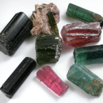 Las piedras multicolores son realmente una maravilla gemológica, ya que su belleza y singularidad no tienen paralelo. Una forma interesante de turmalina multicolor, llamada adecuadamente la turmalina de sandía tiene un centro rojo rodeado por una capa externa verde (o viceversa). Cuando se usa como gema, la sandía turmalina es verde por un lado y roja por el otro. El Chorlo, una turmalina negra común, es bastante económica.
