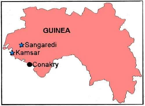Las operaciones consisten en la planta de tratamiento de bauxita de Kamsar, en la costa de África Occidental, y un grupo de minas a cielo abierto situadas 100 km hacia el interior, centradas en la comunidad de Sangarédi. La producción de las minas pasó de 12,2 millones de toneladas en 2001 a algo más de 14 millones en 2005, con 11,5 a 12,5 millones de toneladas anuales de productos de bauxita enviados desde Kamsar. La operación se enfrenta a la reducción de las leyes del mineral a medida que se extrae el material de alta calidad.