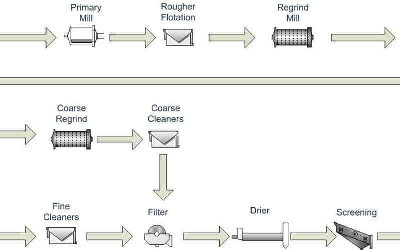 También dispondrá de un circuito de flotación que integrará etapas de flotación rougher, scavenger y de limpieza primaria y secundaria, un filtro y un secador, así como cribas vibratorias e instalaciones de ensacado.