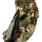 | Sistema Cristalino | Como cristales largos y delgados, prismáticas o aplanada, generalmente con una pirámide puntiaguda en la parte superior (clinopinacoidal), y muy a menudo embebido en una matriz. Masas fibrosas, aerosoles radiantes, y los cristales prismáticos finos entrelazados también son comunes. También puede ser en masas reticuladas y en agregados granuladas embebidas en una matriz. Los cristales son a menudo estriado longitudinalmente y cristales biterminados se encuentran de vez en cuando |