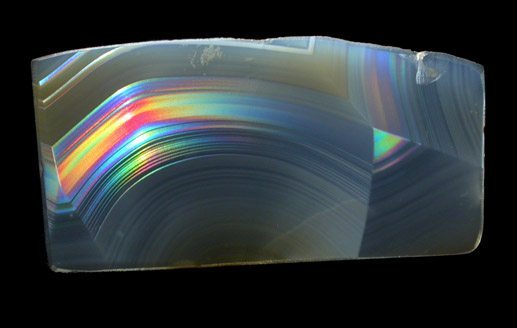 Es un nombre que se usa para un ágata de bandas finas que produce una espectacular visualización de color cuando se corta correctamente y se ilumina desde una dirección que envía luz a través de sus bandas muy finas. El nombre “ágata iris” se usa porque un significado de la palabra “iris” es “una pantalla de colores parecida a un arcoiris”.