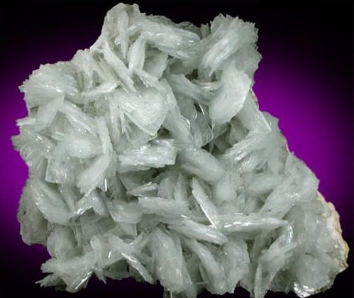 | Formas cristalinas y agregados | Los cristales son tabular , prismática , y como granulado , en forma de placas , y Coxcomb agregados. Los cristales individuales a menudo son gemelos , y pueden ser bastante grandes. También puede ser afilada , masiva , nodular , fibrosa , estalactítica y como roseta perfecta . Los cristales ocasionalmente contienen crecimiento fantasma . |