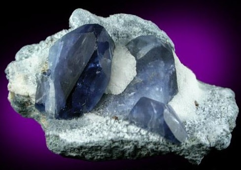 La mayoría de los cristales de benitoita originalmente estaban profundamente incrustados en natrolita gruesa ; los especímenes se preparan para los colectores disolviendo el Natrolite circundante en ácido para exponer los cristales de benitoita. La benitoita azul sobre una matriz blanca de natrolita y la asociación habitual con la neptunita negra hacen una muestra mineral muy estética.