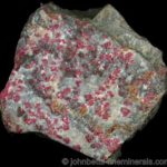 El cinabrio se asocia ocasionalmente con mercurio nativo , en forma de pequeñas gotas metálicas encaramadas en la parte superior o dentro de las cavidades del cinabrio. El cinabrio está compuesto de mercurio que presenta diversos riesgos para la salud, se recomienda lavarse las manos después de manipular las muestras de cinabrio.